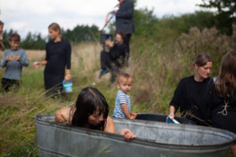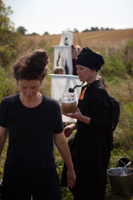 The Tale of The Black Water Snake is a public ritual for Hårbølle created by the artist duo J&K with inspiration from local inhabitants of Hårbølle village. The collectively performed ritual is taking place at a site along the waste water system running under the village and emphasizes the need to cherish the transformative powers of water. Starting at Hårbøllehuset we will walk in a procession to the site. All participants are kindly asked to bring a container of any form and material that can hold water.